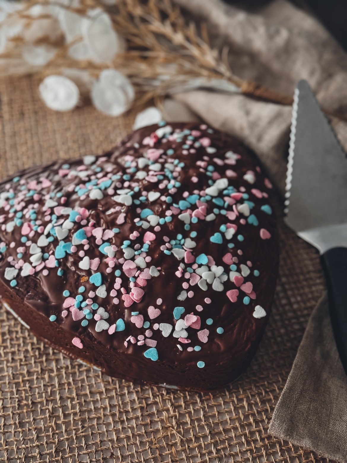 - Spanne ein Backpapier in die Herzkuchenform und fülle den Teig in die Form. Backe den Kuchen ca. 60 - 70 Min im unteren Drittel des Backofens. Bitte Stäbchenrpobe machen.