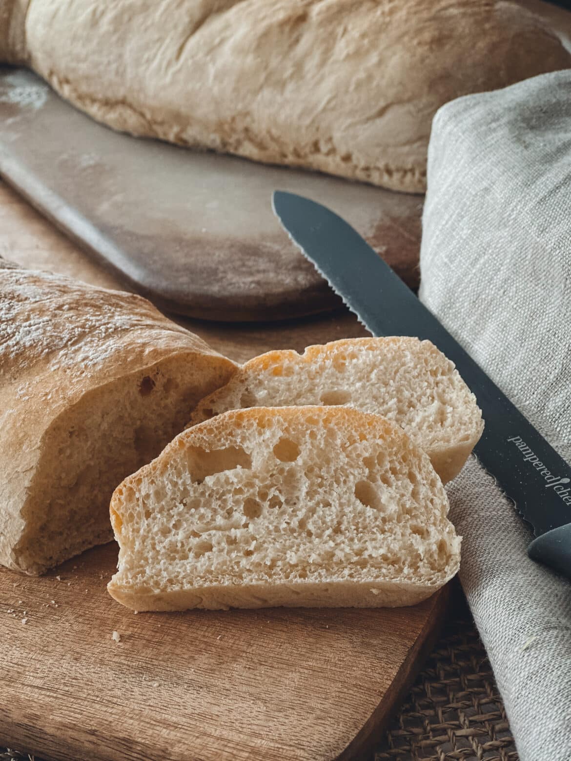 - Die Baguette-Teiglinge auf die Stoneware legen und abgedeckt 20 Minuten gehen lassen. In dieser Zeitden den Backofen auf 220°C Ober- und Unterhitze vorheizen.