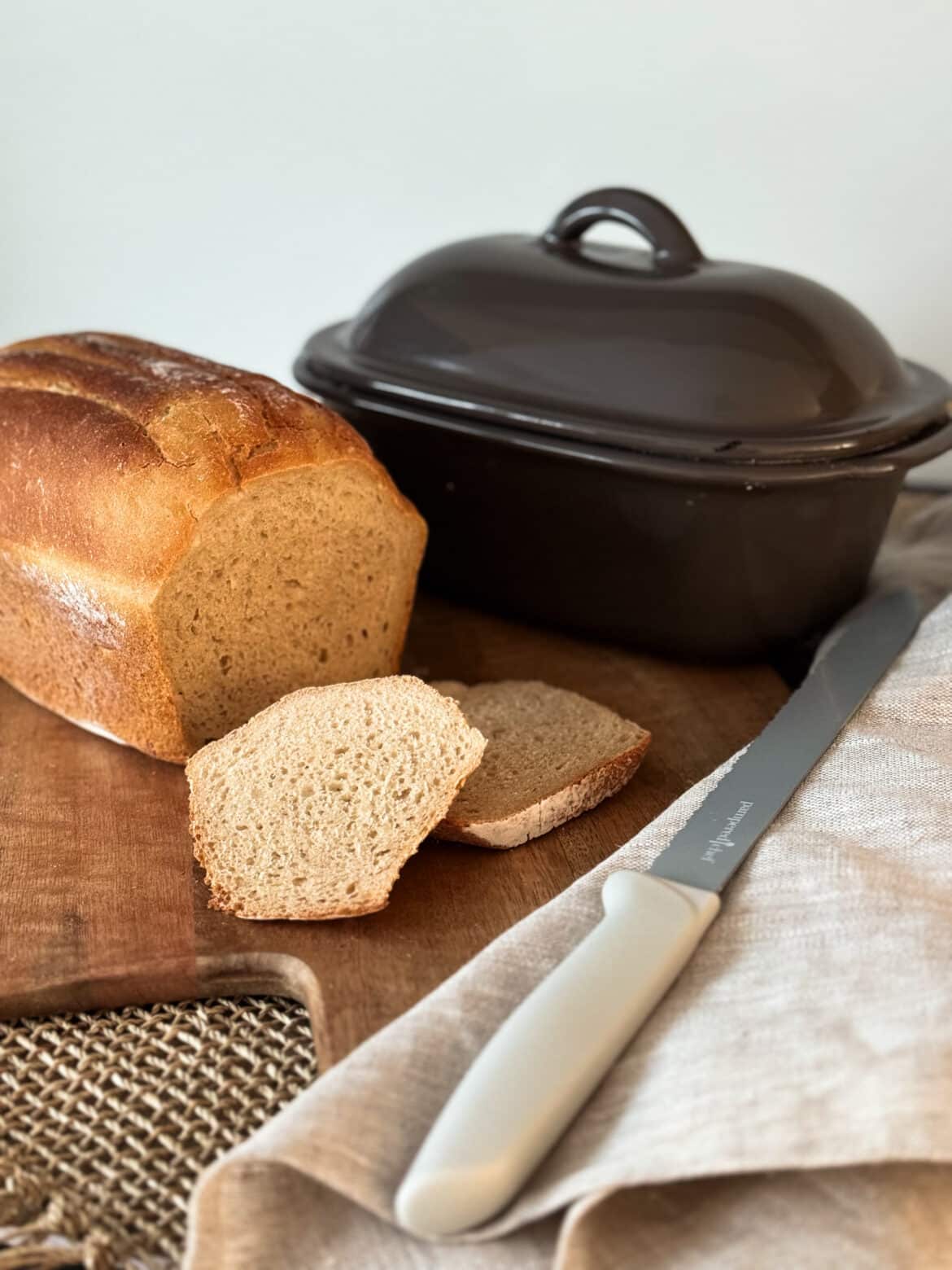 - Deckel auflegen und in den kalten Ofen stellen. Auf der untersten Schiene bei 230°C Ober- und Unterhitze 50-55 Minuten backen.