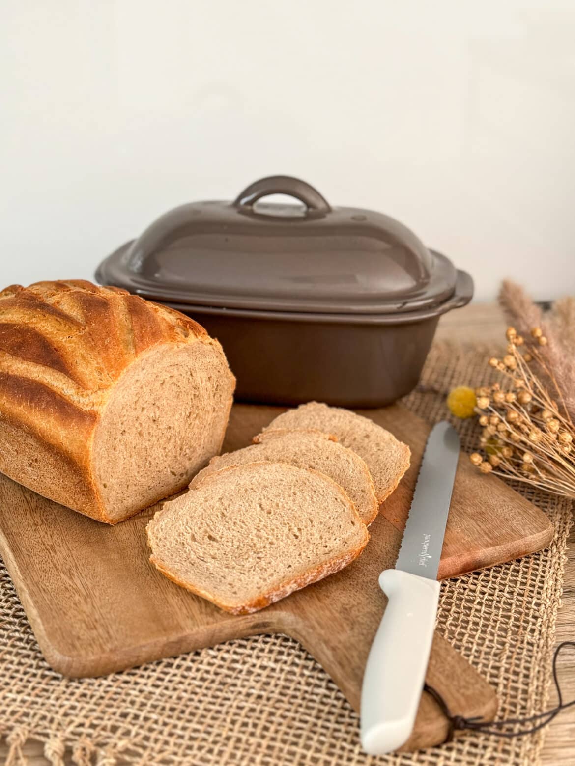 - Deckel auflegen und in den kalten Ofen stellen. Auf unterster Schiene bei 230 °C Ober- und Unterhitze 55 Min. backen.