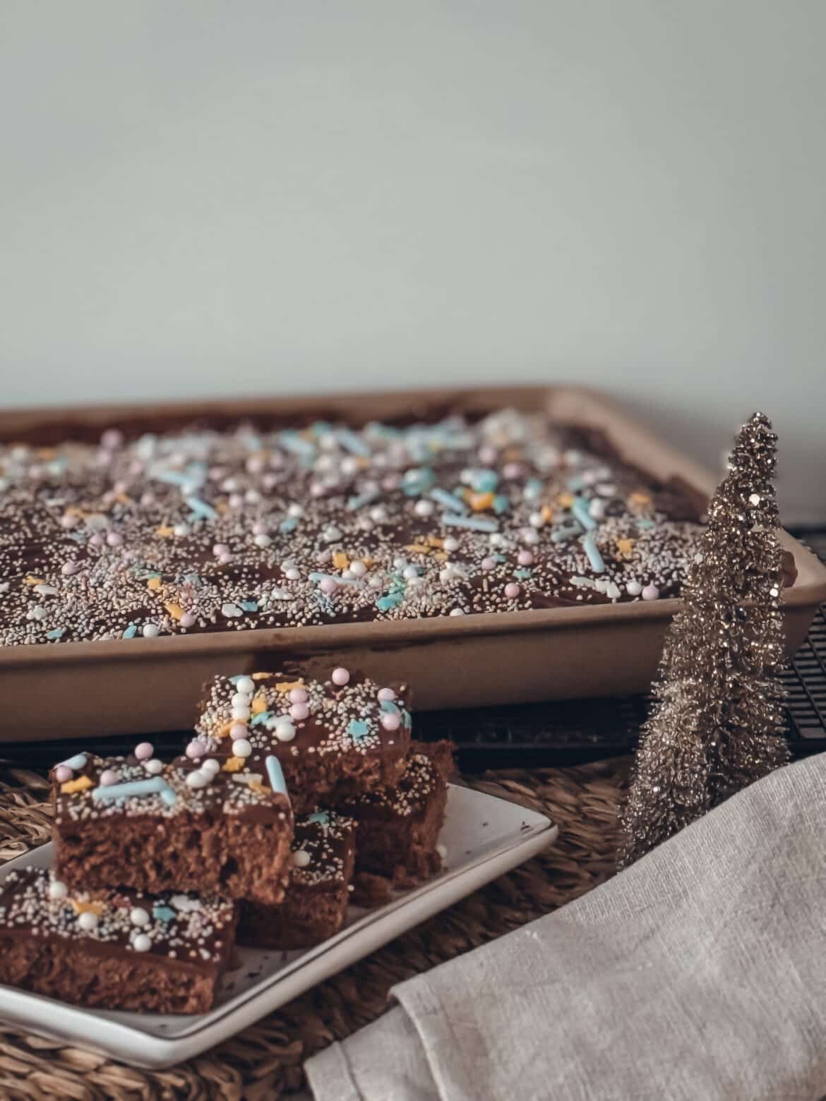 - Die Schokolade in den Mixtopf geben, 5 Sek. / Stufe 8 zerkleinern und mit dem Spaten nach unten schieben. Kokosfett zugeben und 5 Min / 50°C / Stufe 2 schmelzen. Den Guss auf den Lebkuchen streichen, mit Streuseln garnieren und vollständig auskühlen lassen.