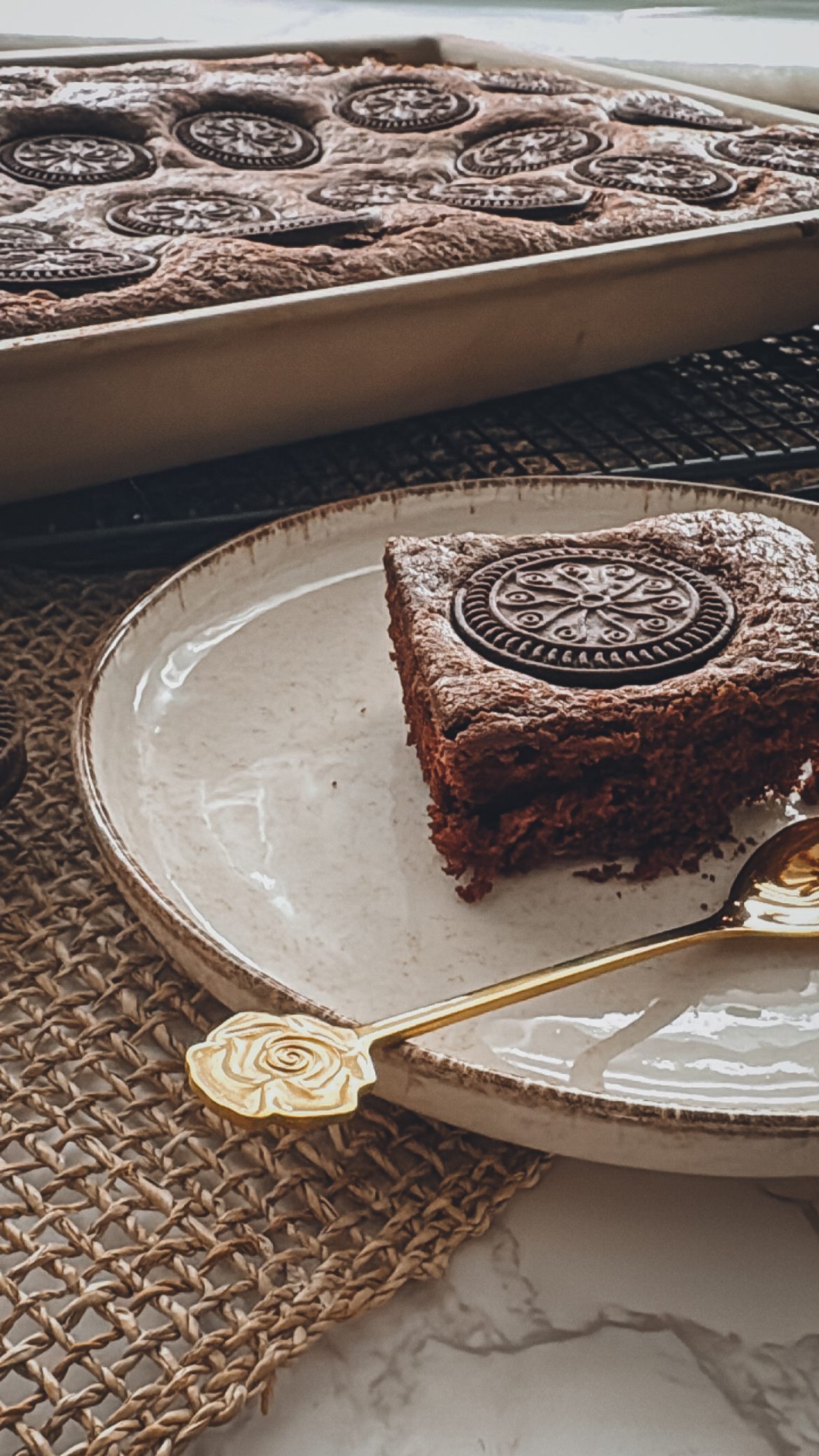 - Den Teigauf dem großen Ofenzauberer verteilen und mit dem kleinen Streicher glatt streichen, 24 Oreo®-Kekse darauf verteilen und im Ofen auf dem Rost, unterste Schiene ca. 25-30 Minuten backen. Auf dem Kuchengitter abkühlen lassen.