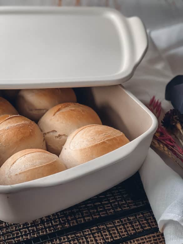 - Den Deckel abnehmen und die Brötchen 10-15 Minuten braun werden lassen.