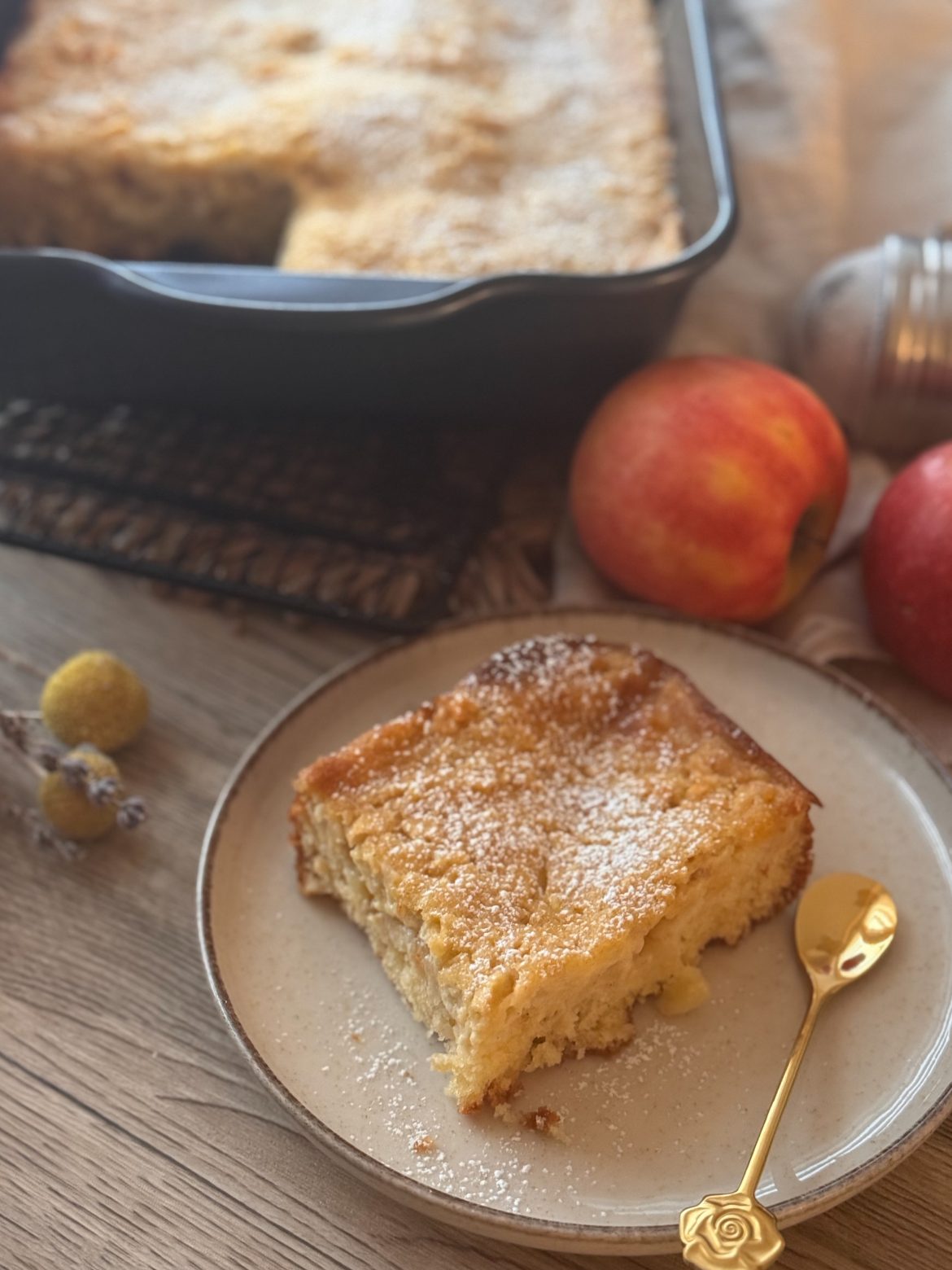 Äpfeln verteilen. - 55–60 Min. backen. Mit Puderzucker bestreut servieren.