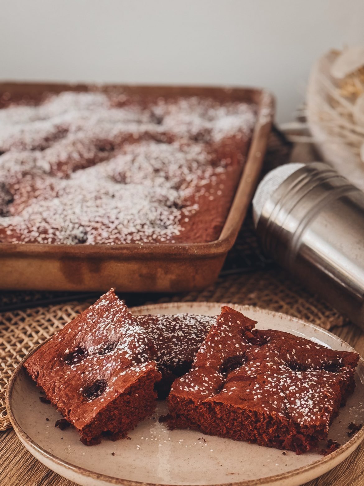 - Nach dem Backen auf dem Kuchengitter abkühlen lassen, in Stücke schneiden und optional mit Puderzucker bestäuben.