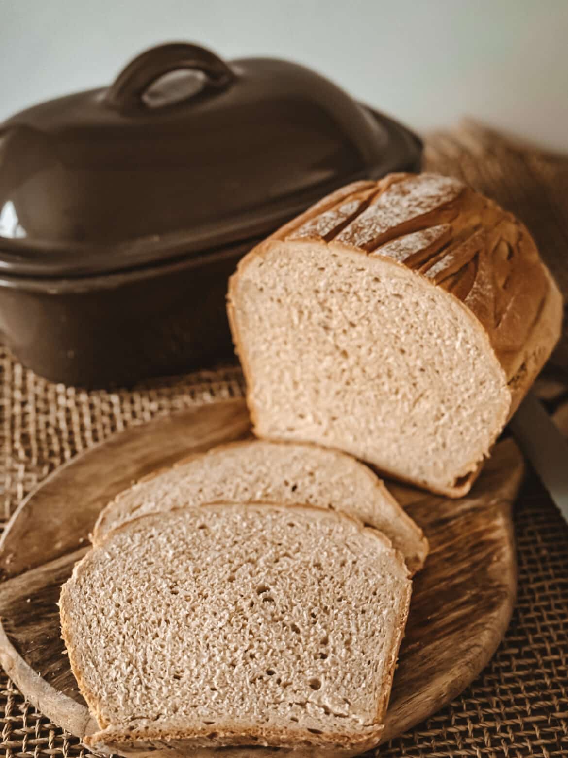 - Deckel auflegen und in den kalten Ofen stellen. Auf der untersten Schiene bei 230°C Ober- und Unterhitze 50-55 Minuten backen.